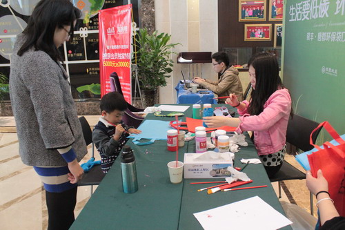 2014年4月19日-4月20日,銀豐地產(chǎn)集團(tuán)唐冶公司在銀豐·唐郡項(xiàng)目營銷中心舉辦了一場以“生活要低碳 ·環(huán)保‘袋’回家”為主題的環(huán)保手提袋DIY活動。