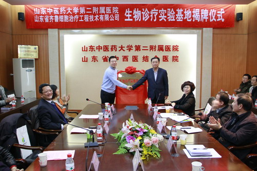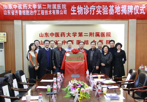 2013年1月18日,濟(jì)南首個(gè)“生物診療實(shí)驗(yàn)基地”揭牌儀式在山東中醫(yī)藥大學(xué)第二附屬醫(yī)院會(huì)議室隆重舉行。院長葛明、副院長鄭心等醫(yī)院領(lǐng)導(dǎo),山東銀豐投資集團(tuán)董事長王偉先生、齊魯干細(xì)胞公司首席科學(xué)家沈柏均教授、銀豐集團(tuán)副總裁劉旭先生、齊魯細(xì)胞治療公司總經(jīng)理郭紅女士、齊魯干細(xì)胞公司總經(jīng)理劉國軍先生等參加了揭牌儀式。
