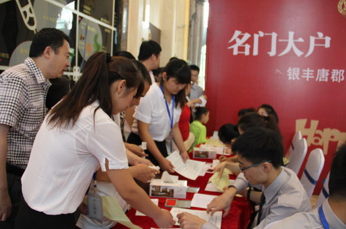 當(dāng)天上午9時(shí)10分正式開(kāi)盤,客戶分組進(jìn)行選房,現(xiàn)場(chǎng)不斷傳來(lái)成交的唱號(hào)聲、祝賀聲,隨著房源的不斷減少,熱銷態(tài)勢(shì)愈演愈烈。開(kāi)盤現(xiàn)場(chǎng)的購(gòu)房人群中有不少是三口之家,王先生一家說(shuō):“我們看中的是銀豐地產(chǎn)品質(zhì)的信賴,銀豐·唐郡項(xiàng)目的規(guī)劃注重人居與環(huán)境的融合,還引入很多綠色生態(tài)技術(shù),低碳環(huán)保的理念,將來(lái)是一個(gè)低碳生態(tài)社區(qū),這不止是一個(gè)承諾,更是對(duì)全新生活模式的宣言。”充分表明了大家對(duì)銀豐地產(chǎn)品牌實(shí)力的認(rèn)可和對(duì)銀豐物業(yè)的認(rèn)同與期待。