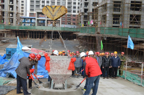 2014年12月11日上午11時(shí)17分,銀豐雅園施工現(xiàn)場(chǎng)鞭炮齊鳴,隨著最后一桶混凝土的澆筑,銀豐雅園項(xiàng)目全面順利封頂。臨沂美聯(lián)置業(yè)有限公司總經(jīng)理關(guān)寧、天元集團(tuán)六公司總經(jīng)理張樹磊及其他參建單位領(lǐng)導(dǎo)、各大媒體出席了項(xiàng)目封頂活動(dòng)。