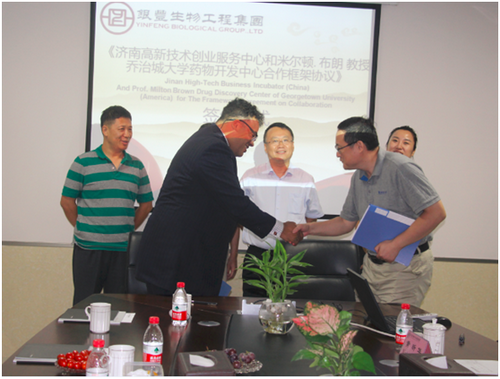 會上,濟南高新技術創(chuàng)業(yè)服務中心與喬治城大學藥物開發(fā)中心正式簽訂合作框架協(xié)議。這一協(xié)議的簽訂,為雙方在轉化研發(fā)成果、高素質專業(yè)人才和專家交流項目打下堅實基礎。
