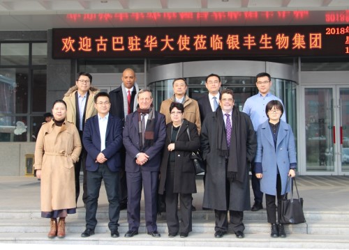 2018年12月19日,古巴駐華大使拉米雷斯一行到銀豐生物集團(tuán)參觀交流。銀豐生物集團(tuán)總裁宋現(xiàn)收、研發(fā)部總監(jiān)王芝輝等陪同參觀。